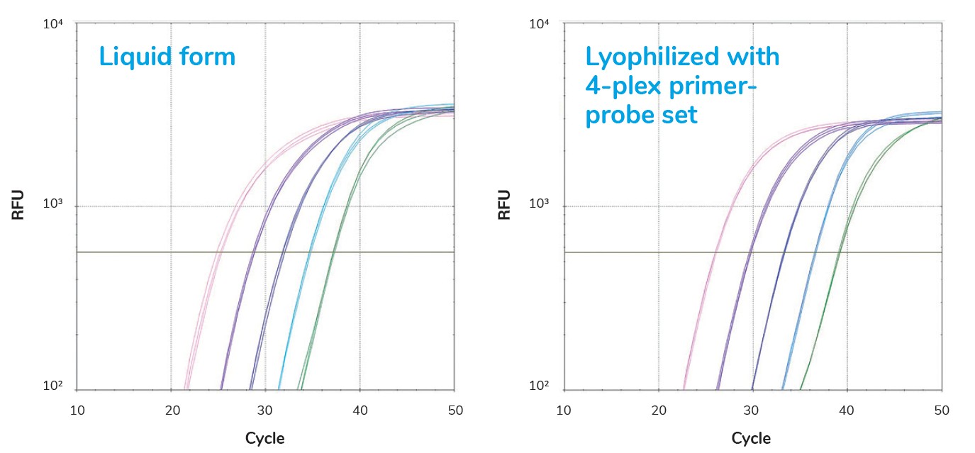 Consistent performance before and after lyophilization with primer-probe set across a wide dynamic range